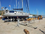 Tandis que la pleine lune culmine, les vents boréens s’apaisent, on en profite pour se lever à l’aube et hisser la Grand Voile, Patrick monte en haut du mât installer la girouette et l’anémomètre électroniques. On met en place la capote, pare-vent et embruns au dessus de la descente qui mène au carré. Fabienne lave les hublots. Patrick fait les retouches à la peinture blanche sur la peinture écaillée. Il range ses outils afin que l’atelier géant qui avait envahi tout le bateau réintègre la coursive-atelier. Les réservoirs d’eau sont remplis, le chantier payé.