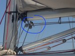 – une bosse de ris, celui pour tendre le bord de la voile, les marins disent « étarquer la bordure » et permettant la prise de ris pour diminuer la surface de la voilure quand le vent forcit,
