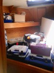 Patrick fiabilise et améliore certains branchements électriques. Il nettoie et protège par antifouling les hélices du moteur et du propulseur, les graisse par un produit insoluble. Il contrôle et change certaines anodes sacrificielles, au niveau du safran.Il installe un interrupteur sur le transformateur d’isolement pour sélectionner, bateau à flot, bateau à terre. Grâce à notre mini imprimante à étiquettes, tout est étiqueté dans le bateau, de la mécanique à l’électricité en passant par les pots des aromates utilisés dans la cambuse. Patrick vérifie les gilets de sauvetage et les équipe de nouveaux feux de repérage et met en fonction de nouveaux flash à led individuels puissants, en cas de chute à la mer.