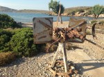 Dès potron-minet, nous levons l’ancre et regardons s’éloigner notre dernière île des Cyclades. Par mer calme et douce brise arrière, principalement sous ski, on s’éloigne des îles des anneaux (kukloi) qui entourent Delos, grand centre antique de culte et de commerce de la mer Egée, lieu de naissance mythique d’Apollon. Après 12 heures de navigation agréable en mer de Kriti, tout à coup dans la brume de beau temps, émerge la Crète, sur toute sa longueur. On distingue ses montagnes et l’envie de pleurer saisit Fabienne. On en a rêvé et nous y voila, la Crète est devant nous, berceau de la civilisation. Y arriver par mer, seuls, sans avoir croisé un seul voilier depuis que l’on a quitté la mer Egée, procure des frissons de fierté. La mer de Crète nous été clémente et nous en viendrions presque à remercier les dieux si notre athéisme ne nous poussait à considérer tout ce panthéon comme une magnifique histoire à rêver debout.
